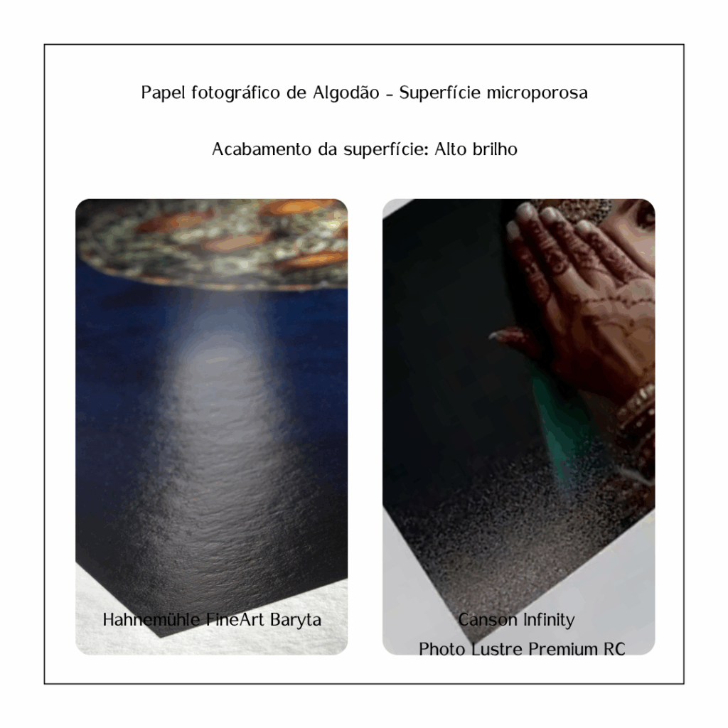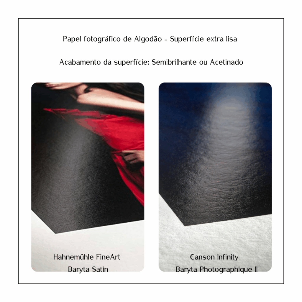 Oferecem ótima vibração de cores e detalhes, possui uma saturação de cor mais profunda do que o papel fosco e é mais resistente às impressões digitais e reflexos que o papel brilhante.