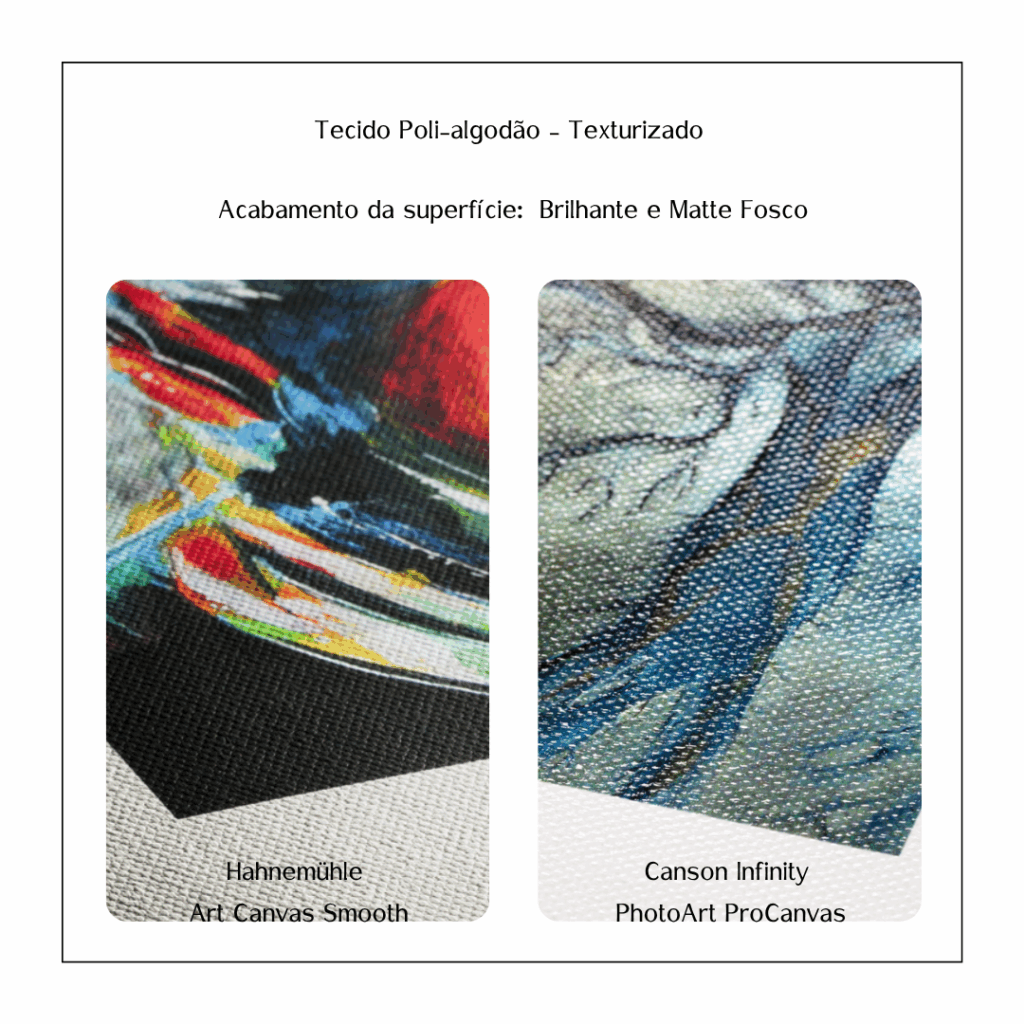 Canvas – É uma tela de tecido produzida com algodão e poly-algodão possui um fundo microporoso.