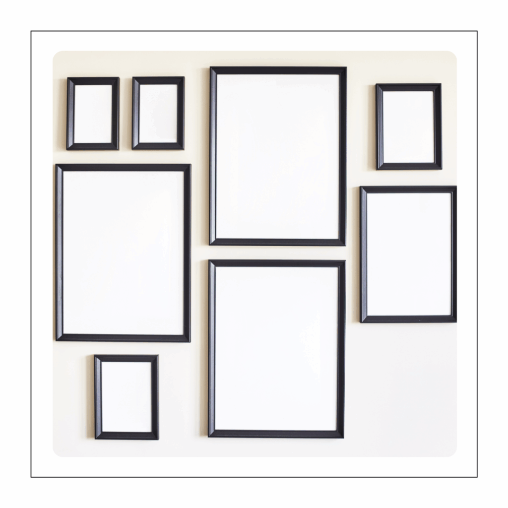 Se você não tiver certeza de como adicionar cor a uma moldura, preto ou branco é sempre uma boa escolha. Ambos vão bem com a maioria dos interiores.